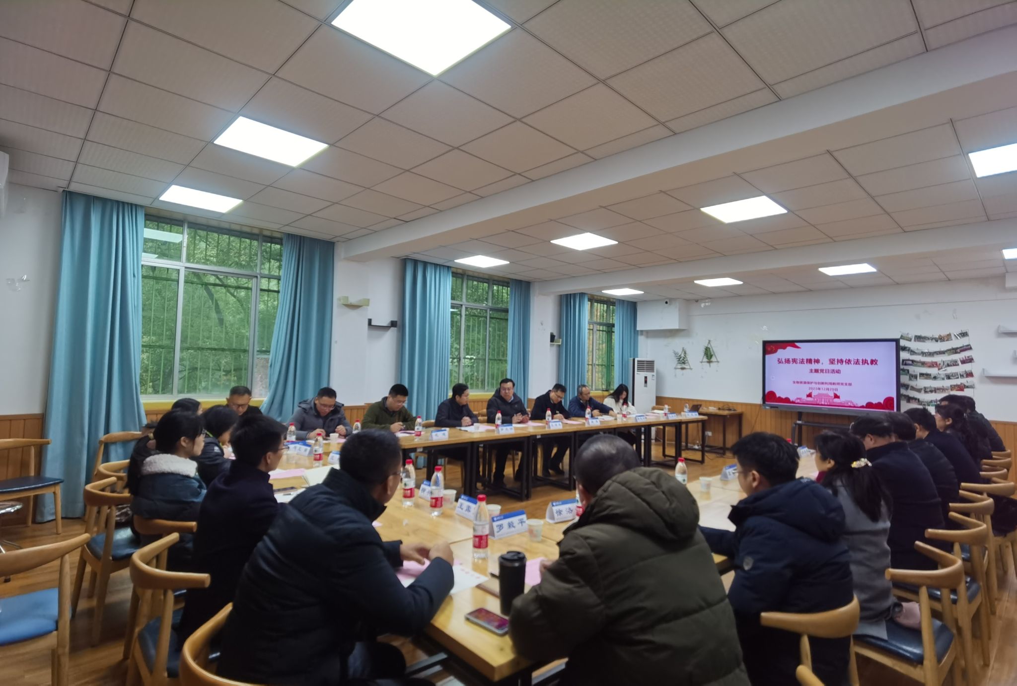 12月29日,beat365中国官方网站生物资源保护与创新利用教师党支部开展了“弘扬宪法精神,坚持依法执教”主题党日活动。学校党委常委、副校长王进军,学院党委书记蒋寒和支部党员参加活动,活动由党支部书记廖志华主持。