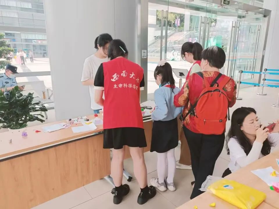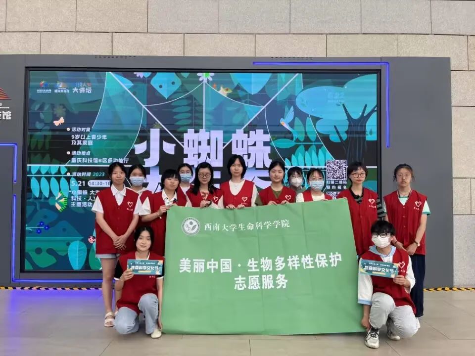 5月22日是国际生物多样性日。近日,学院“美丽中国·生物多样性保护”志愿服务团以国际生物多样性日为契机,走进科技馆、深入校园里、来到山林中,围绕“美丽中国”建设,开展生物多样性保护系列活动。在重庆科技馆B区,志愿者们带领游客开展与蜘蛛有关的游戏竞答、展示互动和制作体验。活动现场,游客们可以观赏五彩斑斓、形态各异的蜘蛛标本,还可以把用黏土制作的蜘蛛模型带回家。