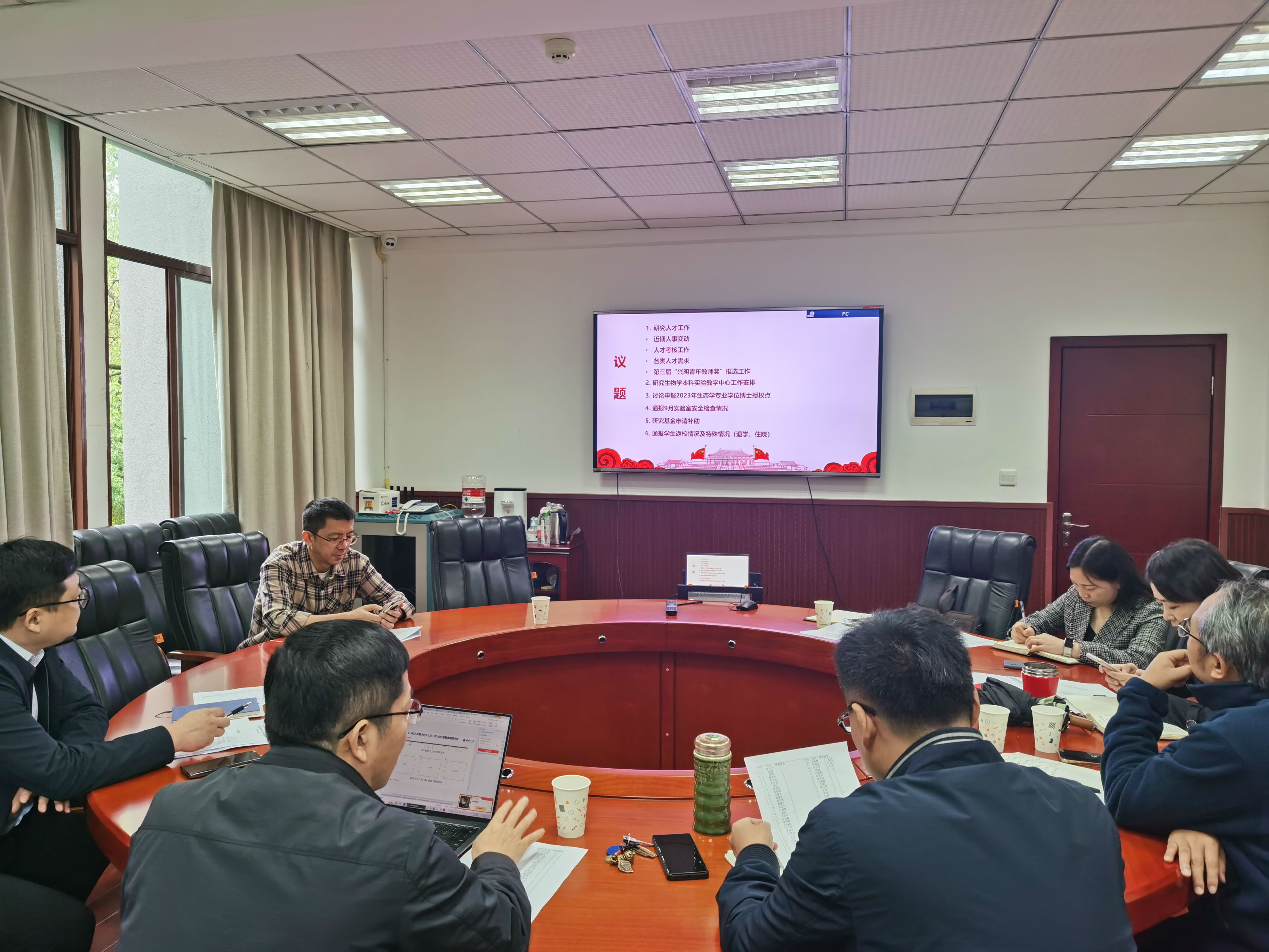 会议讨论并审议了学院近期人事人才工作和生物学本科实验教学中心管理工作,讨论了“开展有组织科研”相关事宜,研究了实验室安全管理和学生规范管理等工作。