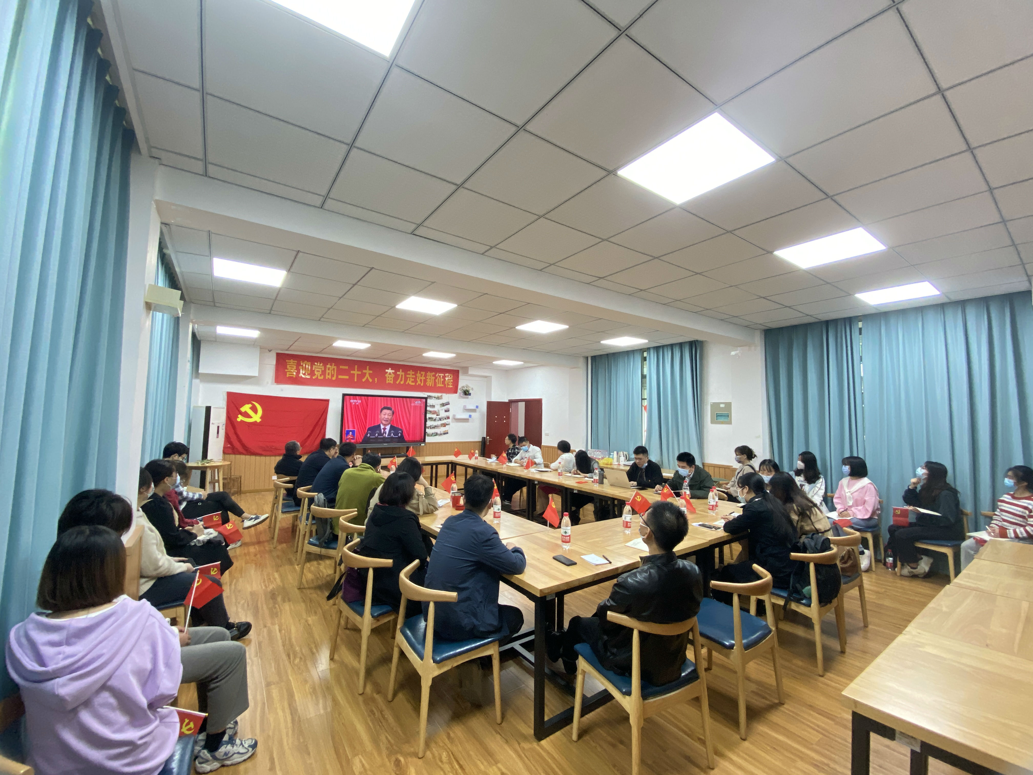 学院各支部师生党员通过电视、电脑、手机等多种渠道收看党的二十大开幕会盛况。学院师生热议党的二十大报告。