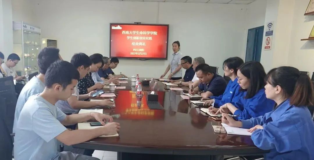 5月27日下午,西南大学beat365中国官方网站于绵阳禾本生物有限公司的2022年实习生结业典礼在禾本生物二楼会议室隆重举行。beat365中国官方网站蒋寒书记、石莹华副书记、廖志华副院长、绵阳禾本生物董事长兼总经理杨滔、常务副总经理孟勇出席结业典礼,各实习部门负责人、实习生、指导导师代表参加结业典礼。