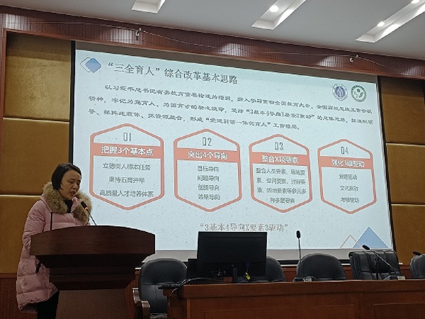 党委副书记石莹华在会上作《构筑“三全育人”大思政格局 助力学院高水平人才培养》专题工作报告。她总结了2021年学生工作情况,介绍了学院“三全育人”综合改革试点工作的思路、总体规划以及预突破的重难点,通报了2022年的重点工作。