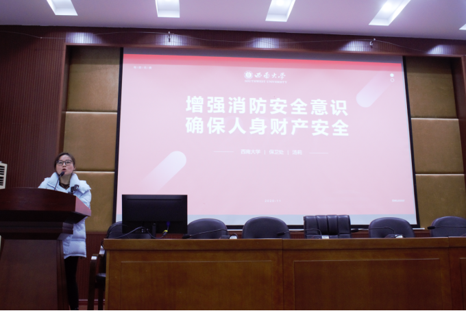 汤老师在消防安全知识讲座中,通过列举真实的案例,尤其是最近几年发生在校园中的安全事故,讲解了与研究生息息相关的实验室和宿舍的安全,让同学们了解和掌握了如何预防火灾、扑灭火灾、火灾现场如何逃生等消防安全知识。并用生动形象的视频为同学们展示了灭火器的使用方法和火灾发生后应如何正确自救。