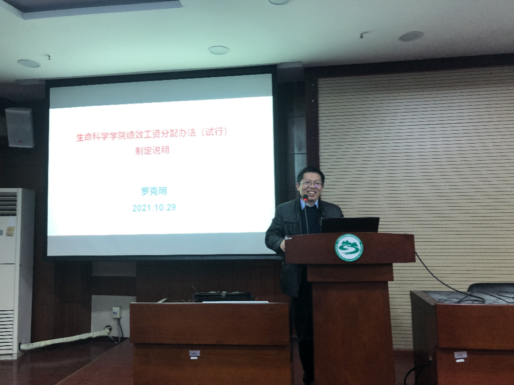 10月29日下午3点,学院在29教二楼学术报告厅召开了绩效工资分配办法制定说明会。