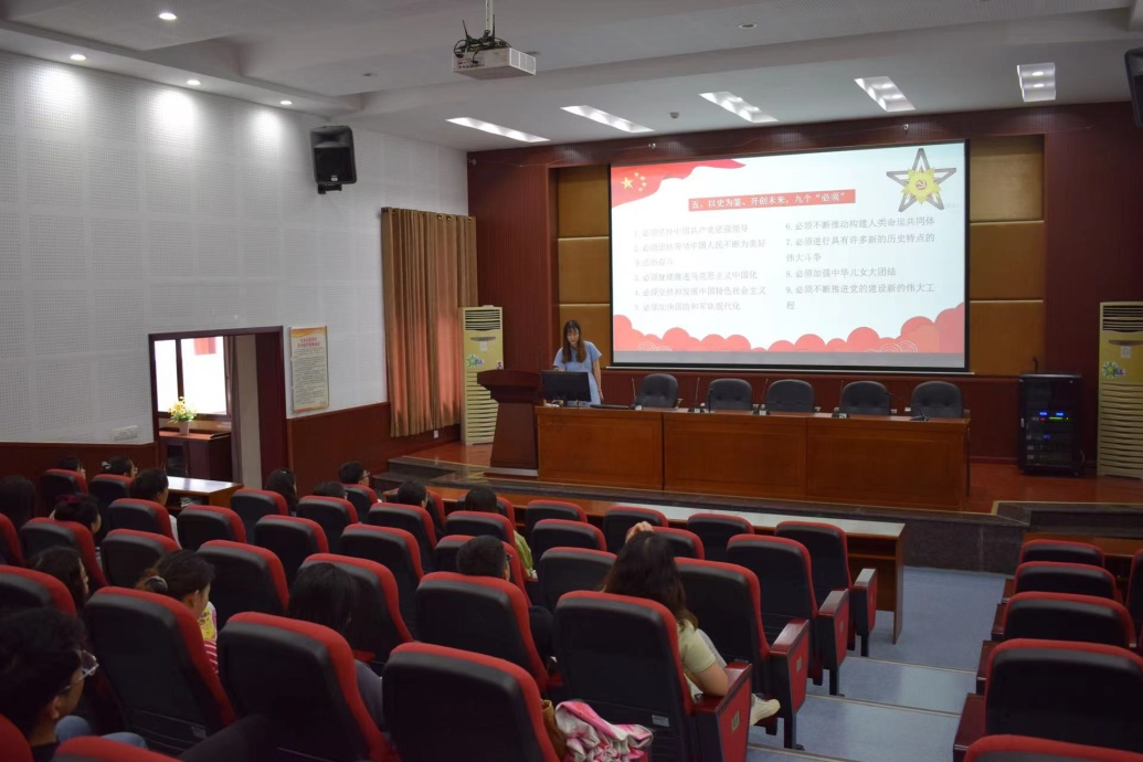 首先是关于习近平总书记在庆祝中国共产党成立100周年大会上的重要讲话内容的学习,由组织部新成员伍颖轶讲解。学习内容从八条重要讲话精神开展,着重讲解了“坚持从严治会,塑造清新形象”部分。伍颖轶同学代表组织部从政治上、组织上、作风上三个方面,对研究生会成员提出了严格要求,需要研究生会每位成员“坚守、把牢、加强”,将研究生会建设成让党放心、师生满意、社会认可、朝气蓬勃的先进学生组织。