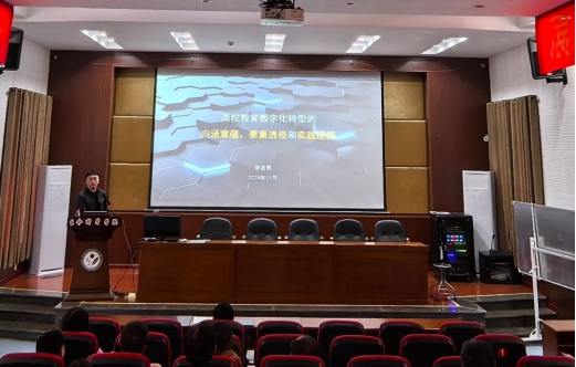 11月1日上午,应学院邀请,学校教务处徐宏凯科长来beat365中国官方网站作了题为“高校教育数字化转型的内涵意蕴、要素透视和实践逻辑”的报告。报告由学院副院长陶文静教授主持,学院领导、全体教师近100人参加了此次讲座。